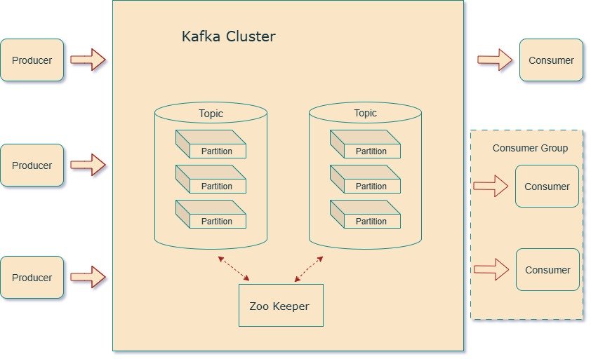 - Brokers form a cluster, coordinated by Zookeeper/Controller.